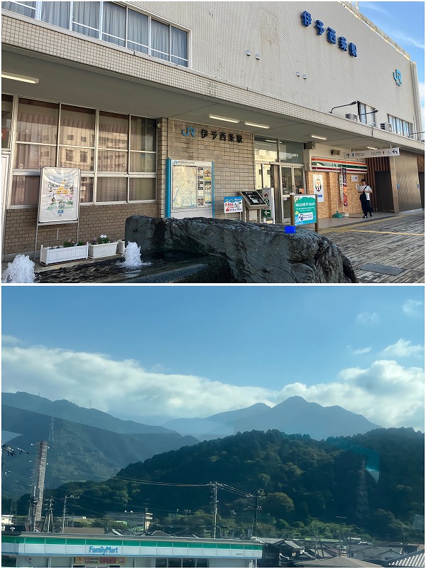14:28 JR伊予西条駅発 車窓から石鎚山が見えます。もうガスはなさそう。下山後晴れる、山のあるあるです。いつもガスガスまたは雨だから残念、悔しいとか思わなくなりました。悟りを開いたかも? むしろ今日は雨が降らなくてよかった。それに今回の旅のピークはサンライズ瀬戸ですし。数日すれば、現物より色鮮やかに加工された写真がインスタにアップされるでしょう。
