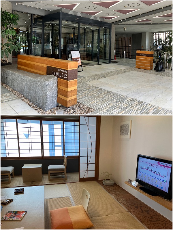 フロントには寄らずに連絡のあった部屋へ直接きました。「お久しぶりです~」 夏に退職した元同僚がすでにくつろいでいました。このお宿は彼女が予約してくれました。元同僚「羽田からの飛行機で外の景色がよく見えたんだけど、香川県あたりだけ雲がすごくて。山大丈夫だった?」 なんにも見えなかったです。しばらくお互いの報告をしてお風呂へ。