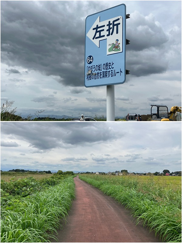 サイクリングルートを歩きます。蓮の里からさきたま古墳公園までのバスもありますが、バスを待つならと歩いてしまいました。徒歩30分ほど
